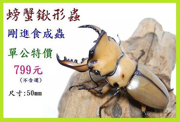 螃蟹鍬形蟲 (H.m) ♂50mm 單公成蟲 $799(剛進食)
