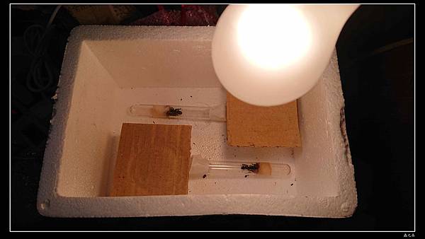 5.換巢的方式,建議將新舊巢用連接後,將新巢用厚紙板蓋住(新巢變暗),在舊巢約30公分高的上方,用40W左右的燈泡直接照射;在沒有安全感的情況下,過不了多久,整巢連卵及幼蟲都搬光光了!