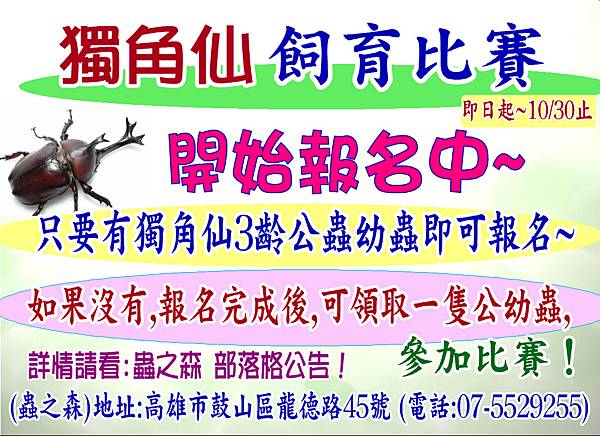 蟲之森 112年 第5屆獨角仙飼育比賽辦法及規則: