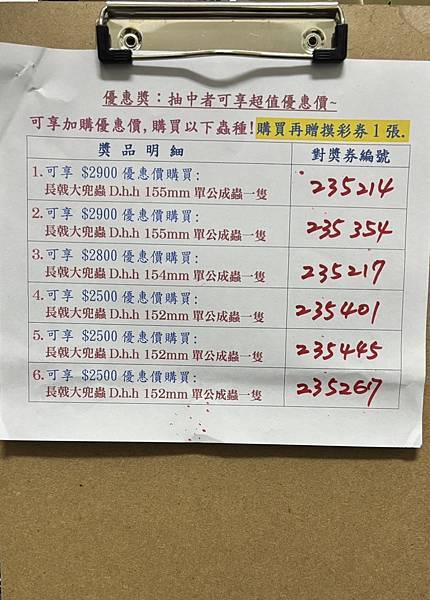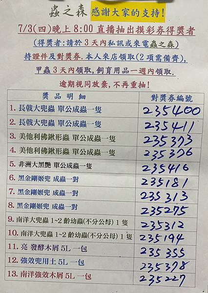 7/3摸彩券得獎號碼公佈(抽5/16~6/30摸彩券)