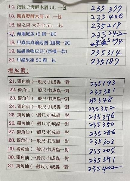 以下號碼如有誤植,以直播影片抽出得奬者為主.